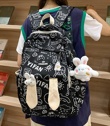 Fashionable Graffiti Print School Bag for High & Middle School Students Black