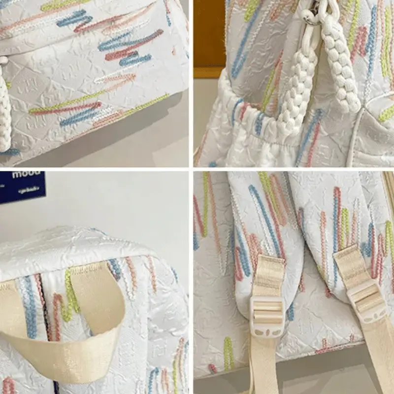 New Fashion Waterproof Anti-theft Nylon Backpack for Girls Cream White